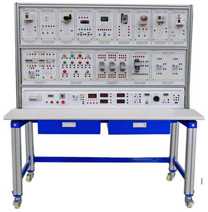 總體結(jié)構(gòu):實訓(xùn)臺架由實訓(xùn)桌、電源控制單元、儀表顯示單元等多個部分組成。臺架以經(jīng)氧化處理的高材質(zhì)40mm×40mm鋁合金作為設(shè)備主要框架材料;臺架采用鋁合金的本體顏色,電源箱體采用灰色1.2mm鋼板制作。實訓(xùn)屏底部裝電源控制屏,電源控制屏的面板布局從左至右依次為電源指示和電源控制單元、含電源保護單元、指示燈和按鈕單元、急停開關(guān)、儀表單元、直流電源單元;實訓(xùn)桌桌面采用25mm麻灰色高密度層壓板封邊特制,有效提高絕緣等級。