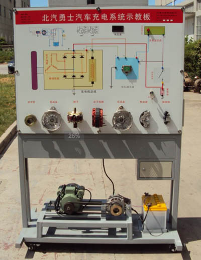 設(shè)備由勇士原車發(fā)電機(jī),蓄電池、電壓表、電流表、大功率負(fù)載、充電指示燈、空氣開關(guān)、帶安全保險(xiǎn)的電源輸入接口、電源線、考核系統(tǒng)、電動(dòng)機(jī)及所有充電系統(tǒng)相關(guān)部件組成,在設(shè)備的中間部位,為完整的發(fā)電機(jī)分解部件。設(shè)備的下部為蓄電池、發(fā)電機(jī)、電動(dòng)機(jī)。上部為高清噴繪彩色原理圖面板、故障設(shè)置及故障排除系統(tǒng)、控制面板、可移動(dòng)臺(tái)架。配套設(shè)備使用說(shuō)明,實(shí)訓(xùn)指導(dǎo)資料、產(chǎn)品合格證、保修卡。