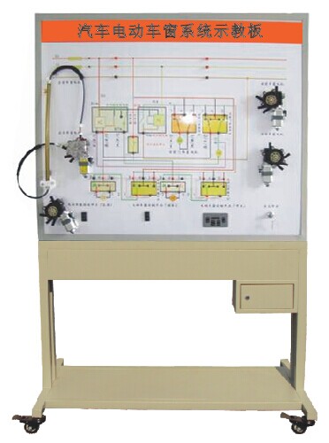 本產(chǎn)品選用桑塔納汽車(chē)電動(dòng)車(chē)窗系統(tǒng)實(shí)物,展示汽車(chē)電動(dòng)車(chē)窗系統(tǒng)的結(jié)構(gòu)與原理;面板上繪有完整的電動(dòng)車(chē)窗系統(tǒng)的電路圖,設(shè)置有檢測(cè)端子,可通過(guò)儀器儀表檢測(cè)各種信號(hào)參數(shù)如電壓、電阻、頻率等。