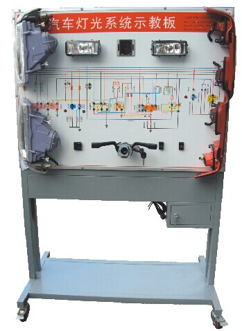前大燈、前角燈、前霧燈、側(cè)燈、燈光開關(guān)總成、變光開關(guān)總成、尾燈、牌照燈、后霧燈、剎車燈開關(guān)、倒車燈開關(guān)、故障設(shè)置系統(tǒng)、電源、彩色原理與結(jié)構(gòu)圖、控制面板、可移動臺架、使用說明書及實訓指導書等。