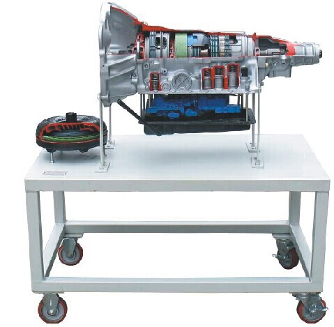 本實驗臺以豐田A340E(典型辛普森行星齒輪結(jié)構(gòu))后驅(qū)電控4速自動變速器實物為基礎,由移動臺架、解剖變矩器和解剖變速器總成三部分組成。適用于中高等職業(yè)學院和培訓機構(gòu)的汽車自動變速器構(gòu)造與維修實訓教學,能夠滿足對汽車自動變速器的結(jié)構(gòu)、工作原理直觀展示的教學需要。本實驗設備操作方便,安全可靠,易于維護。